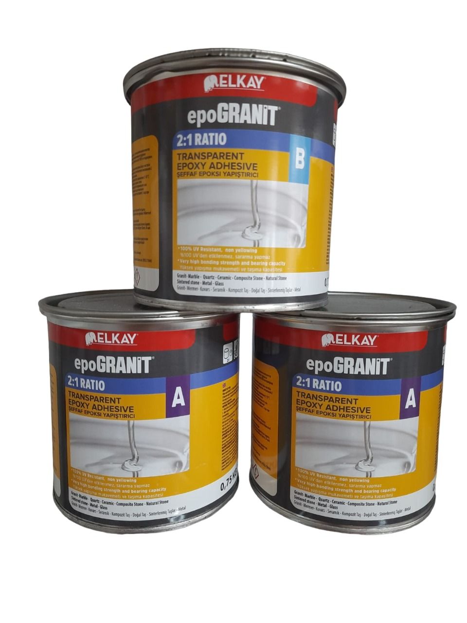 epo GRANIT 2003 - двухкомпонентный эпоксидный клей - желеобразный, прозрачный, влагостойкий строительный клеящий материал, который добавляется в пропорции 2:1 и застывает в течение 45 минут. Может использоваться для создания точной и тонкой поверхности сцепления (тоньше 1 мм). Отличается высокой крепостью сцепления и несущей способностью.