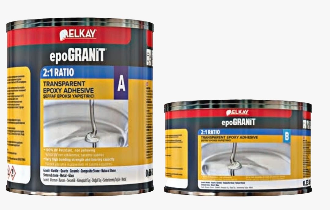 epo GRANIT 2003 - двухкомпонентный эпоксидный клей - желеобразный, прозрачный, влагостойкий строительный клеящий материал, который добавляется в пропорции 2:1 и застывает в течение 45 минут. Может использоваться для создания точной и тонкой поверхности сцепления (тоньше 1 мм). Отличается высокой крепостью сцепления и несущей способностью.